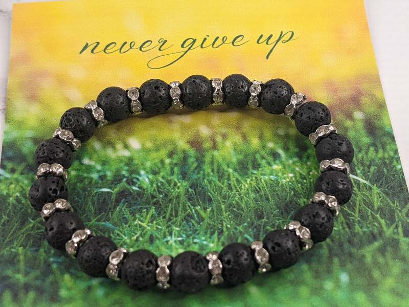 Never Give Up Lava Stone Bracelet