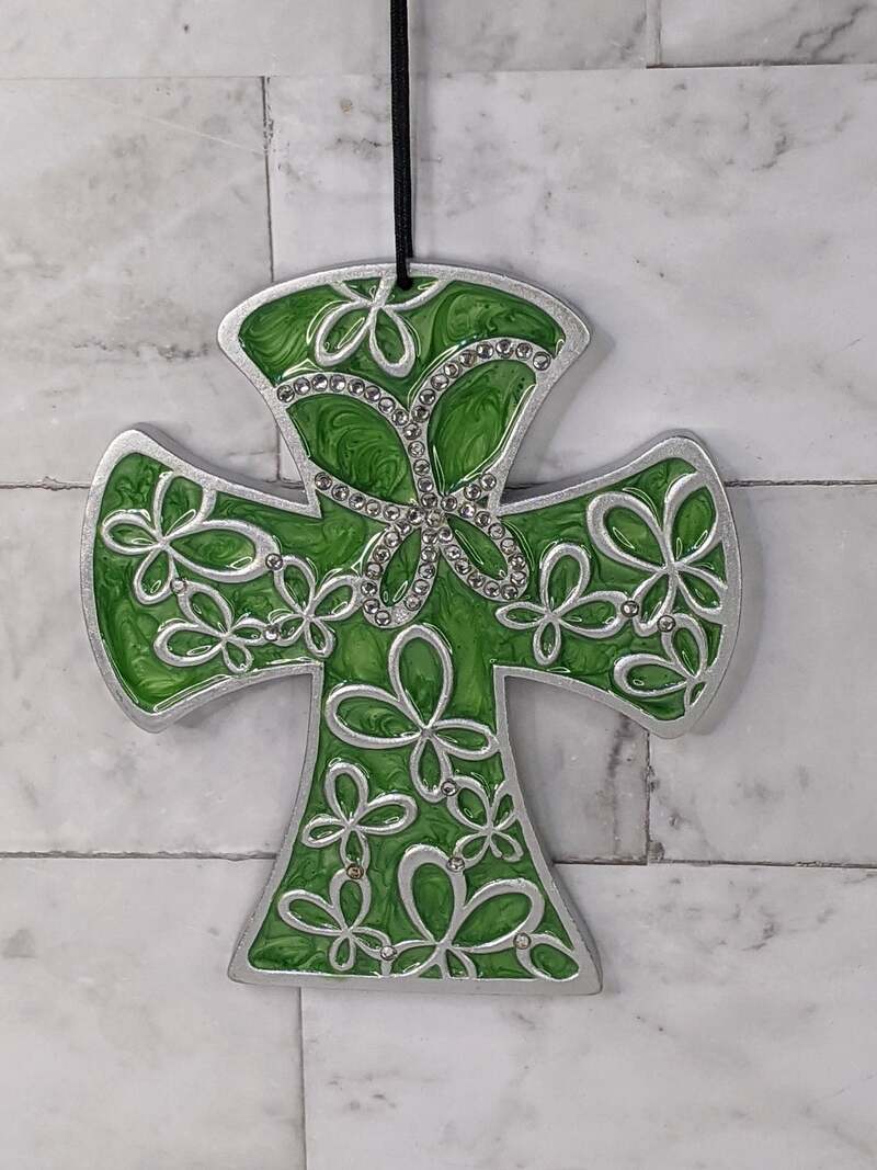 Green Butterfly Crystal Cross
