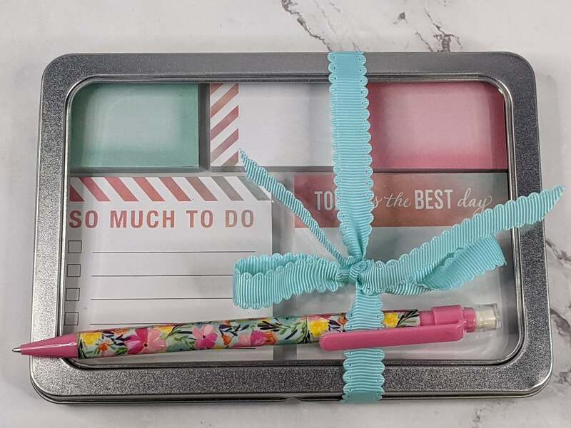 Sticky Notes in a Tin with a Pencil